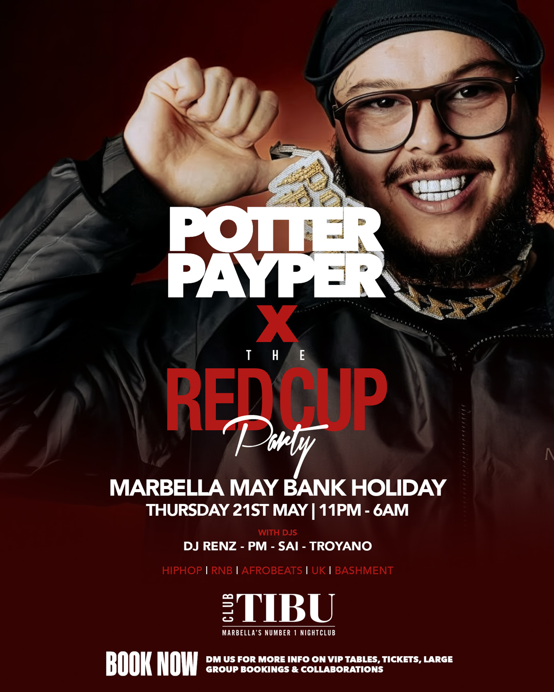 Red Cup Party x Potter Payper @ Tibu Marbella Thursday 21st May Bank Holiday